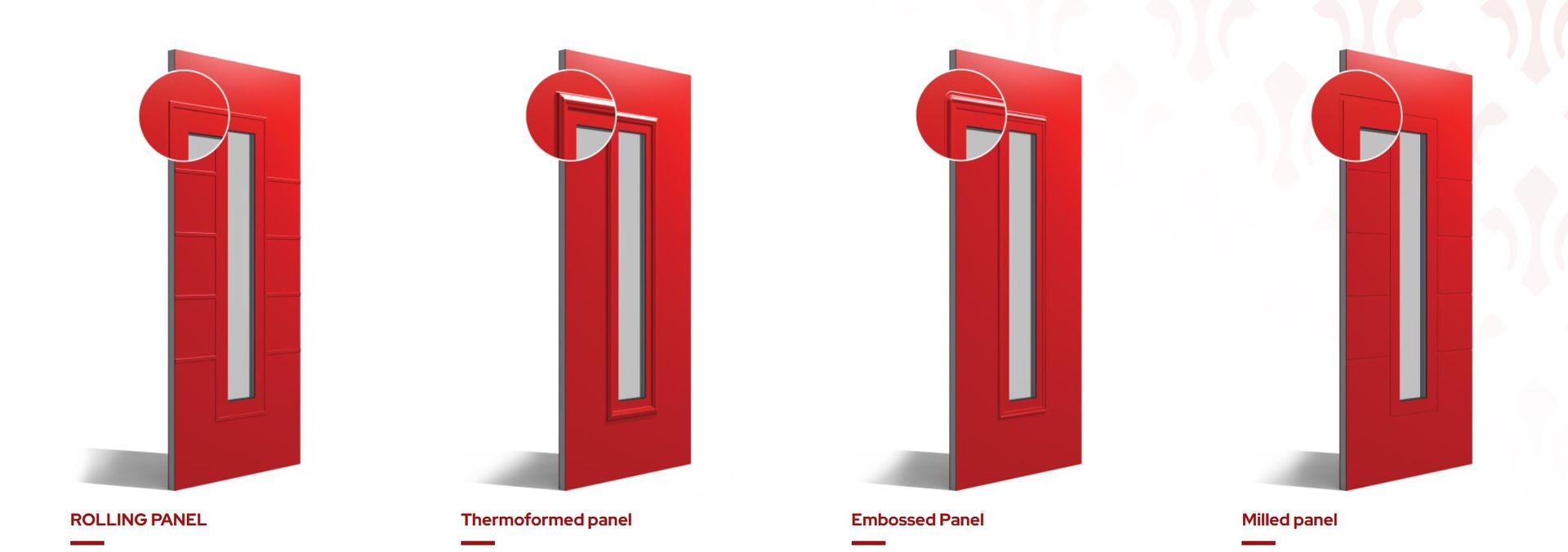 I pannelli ornamentali per porte sono lastre rettangolari in PVC, HPL o Alluminio, composte da più fogli, a seconda del riempimento desiderato dal cliente: Tipo A, B, C o standard